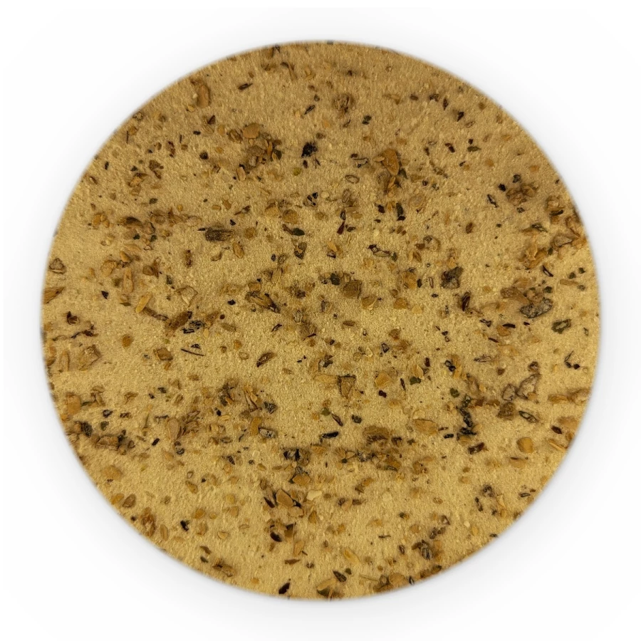 mąka pszenna, skrobia pszenna, sól, cukier, nać pietruszki, barwnik: karmel E150; cebula, pieprz czarny, aromat, regulator kwasowości: kwas cytrynowy; suszone pieczarki (0,02%).